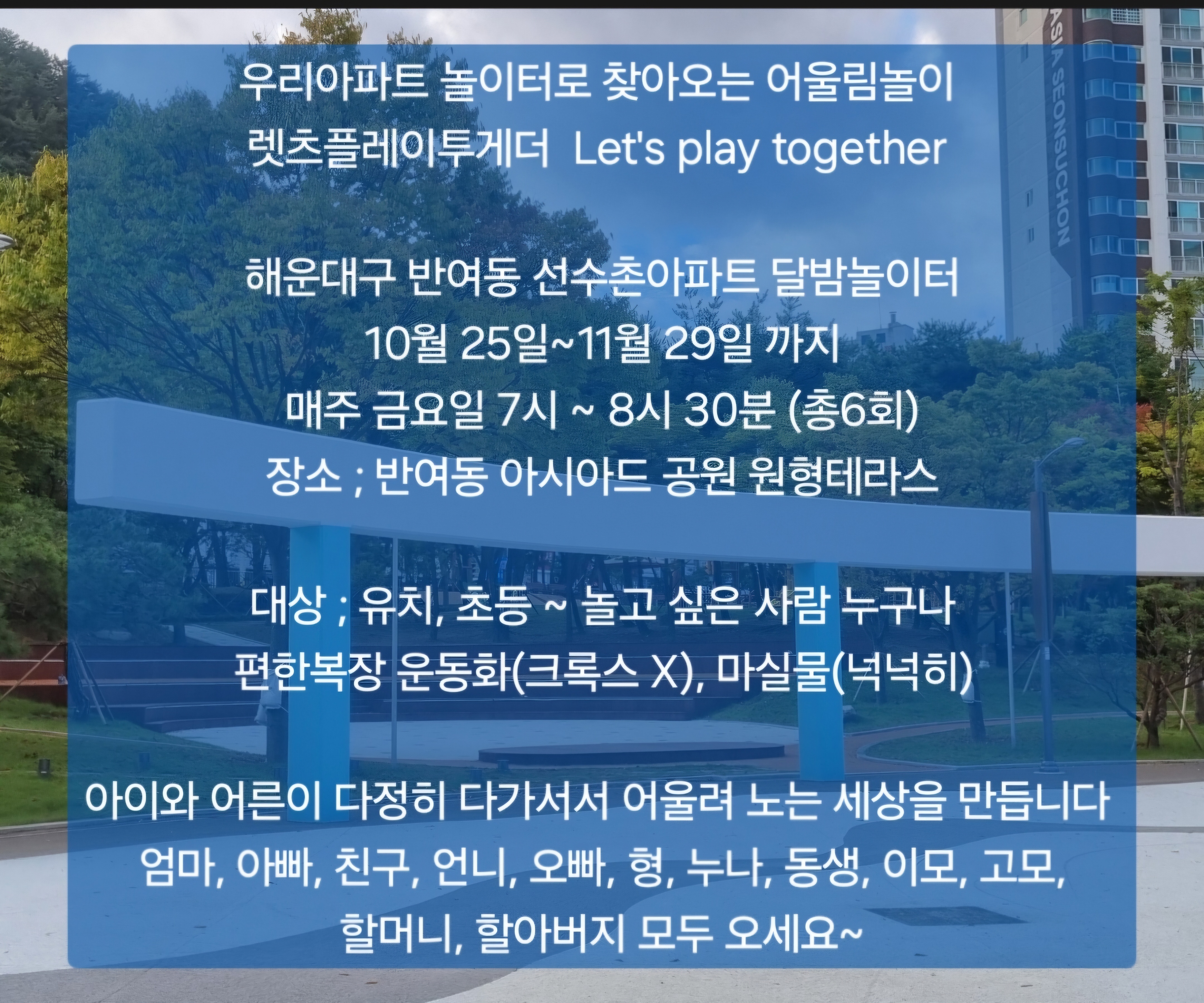 [재능기부] 아파트로 찾아가는 어울림놀이 예고(반여동)
